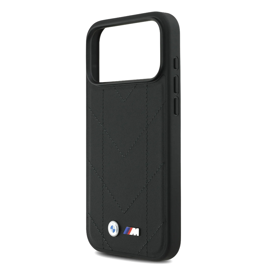 BMW для iPhone 17 Pro Max MagSafe Quilted Leather Case Metal Logo Black