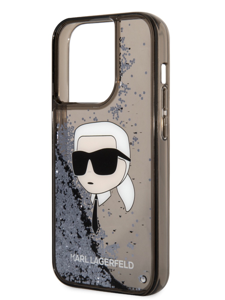 Karl Lagerfeld для iPhone 15 Pro чехол Liquid Glitter NFT Karl head Hard Black