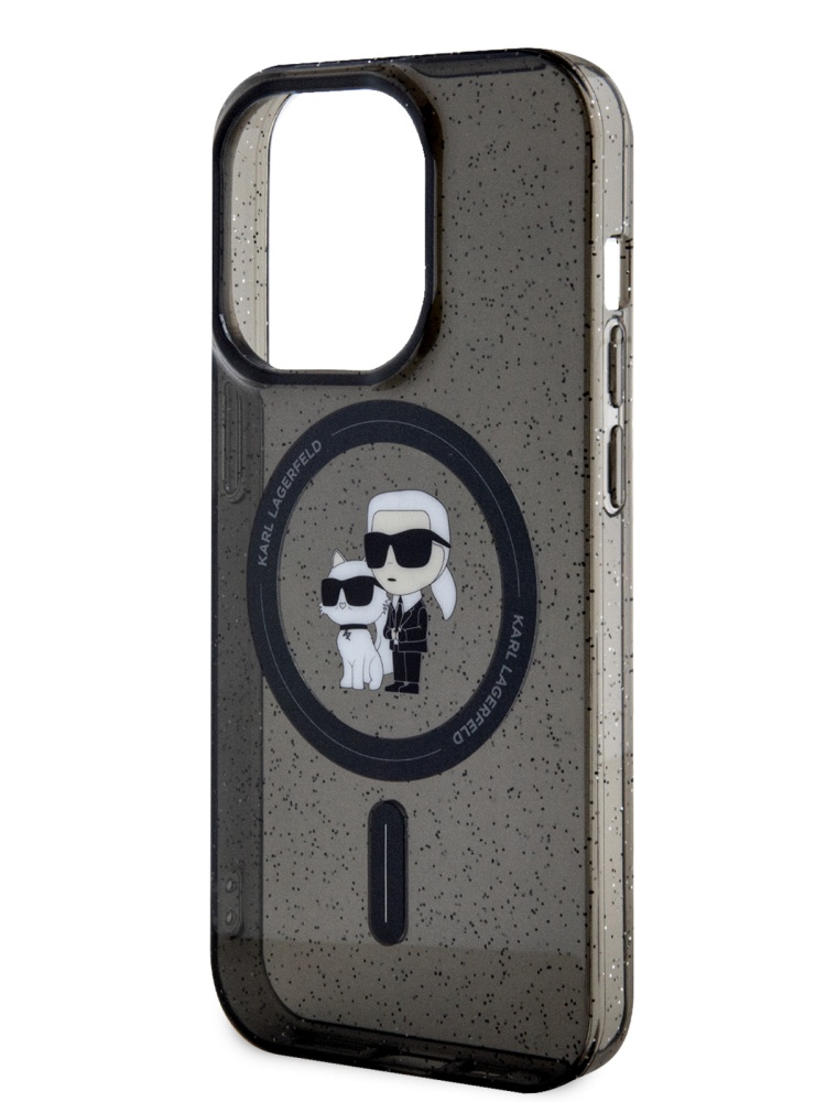 Lagerfeld для iPhone 15 Pro чехол PC/TPU NFT Karl & Choupette Hard Glitter Black (MagSafe)